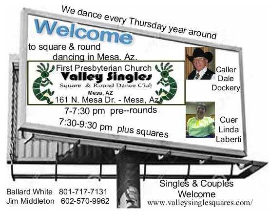 Interested in Square and Round dances? The Valley Singles Squares dance every Thursday of the year (except Thanksgiving and Christmas). Both singles and couples are welcome.
