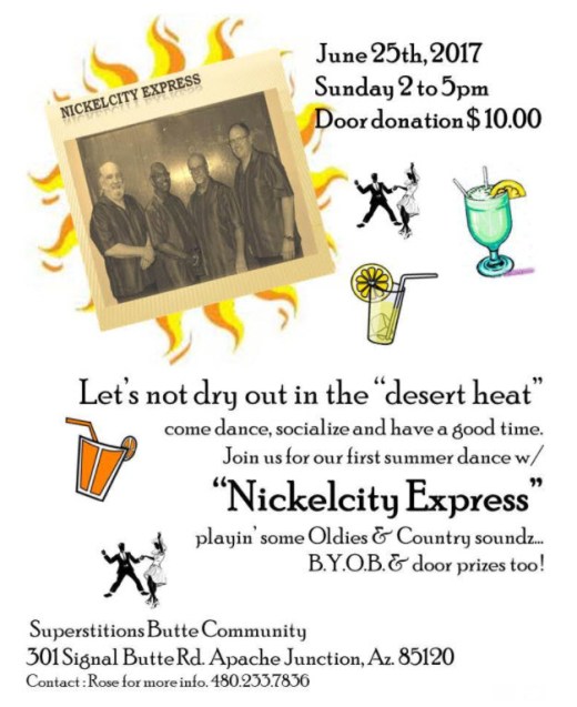 The summer dances at Towerpoint have been moved to Sun Life Resort. Sun Life is just west of Higley on University, at 5055 E. University. Below is a map.