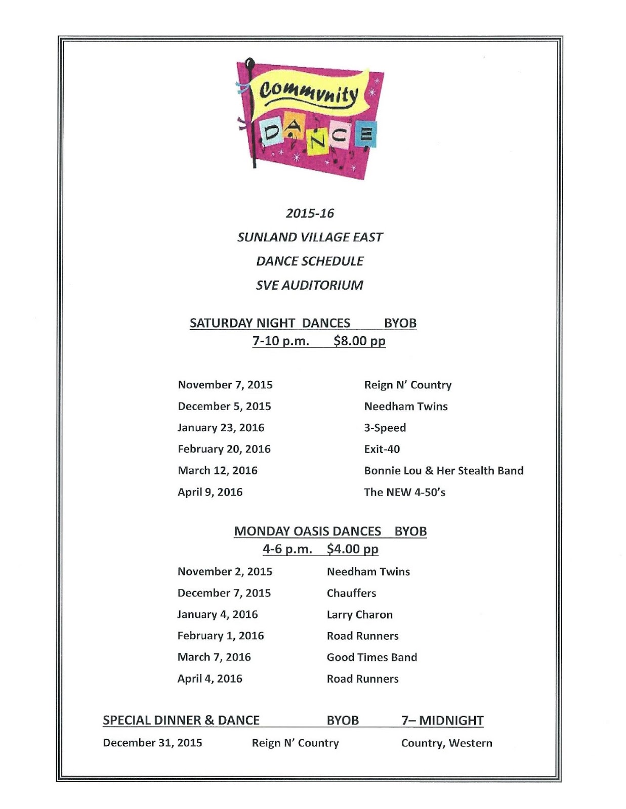 Then there will be 3 weeks of refinishing with the dances starting back up on Sept 4 with Debbie and Double Eagle and Sept 5 with Rich Howard.